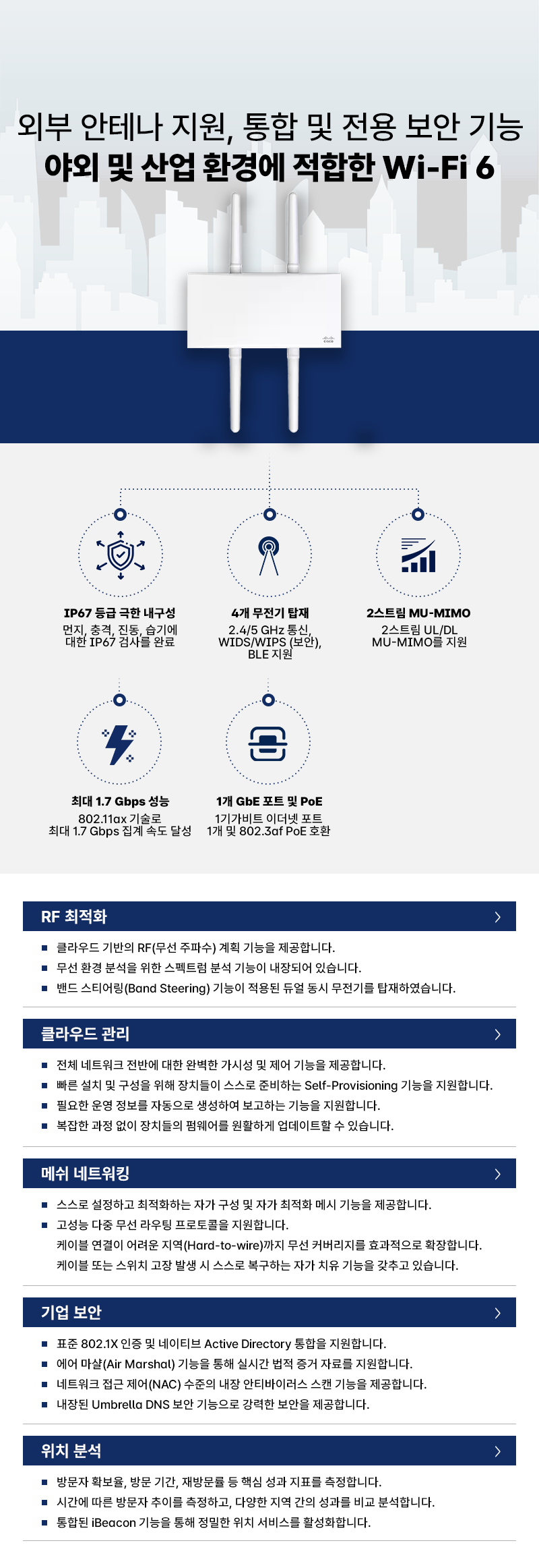 외부 안테나, 통합 및 전용 보안, 블루투스® 라디오를 지원합니다.
