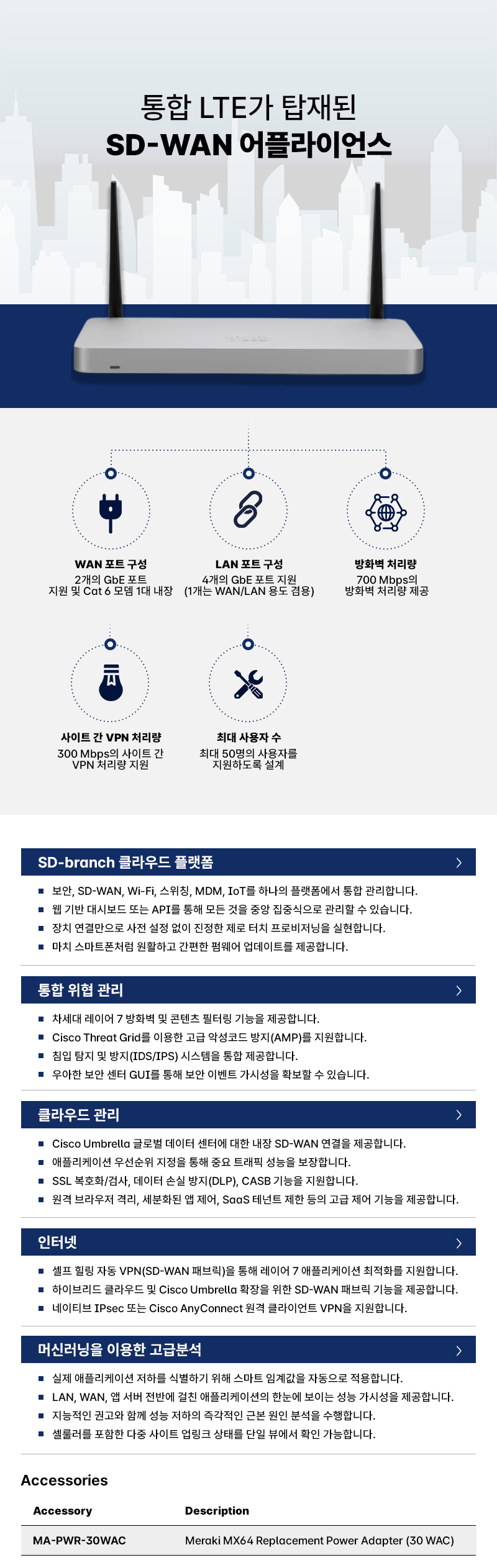 최대 50명의 사용자를 위한 소규모 지점 보안 및 SD-WAN 어플라이언스입니다.
