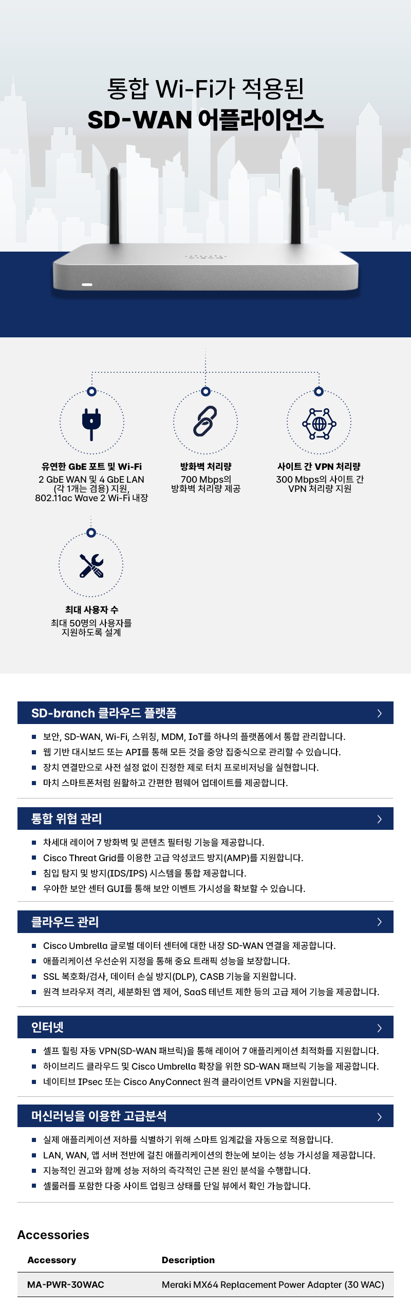 최대 50명의 사용자를 위한 소규모 지점 보안 및 SD-WAN 어플라이언스입니다.