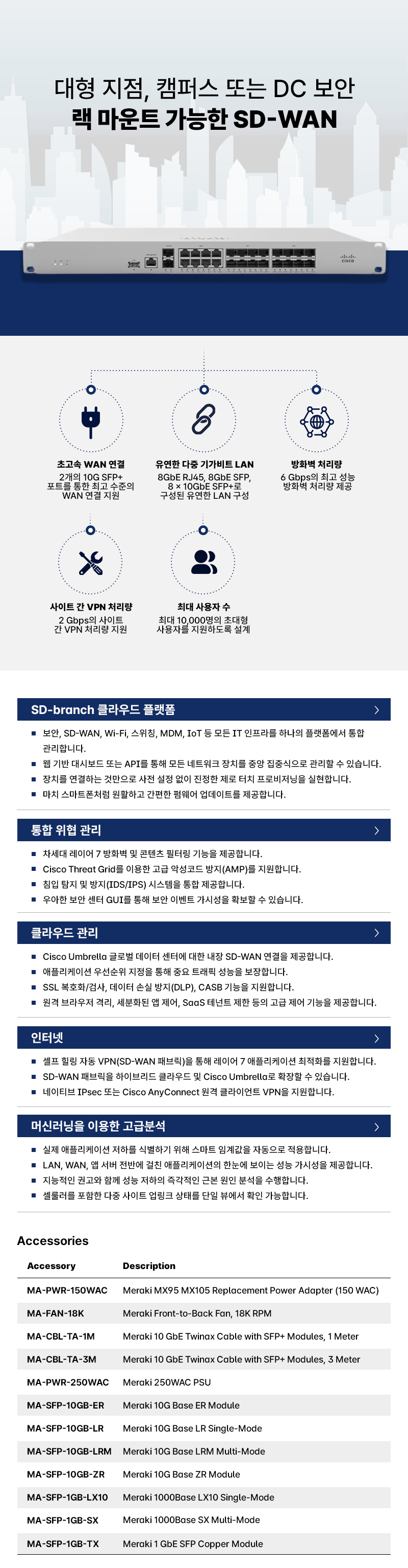최대 10,000명의 사용자를 위한 대형 지점, 캠퍼스 또는 DC 보안 및 SD-WAN 어플라이언스.