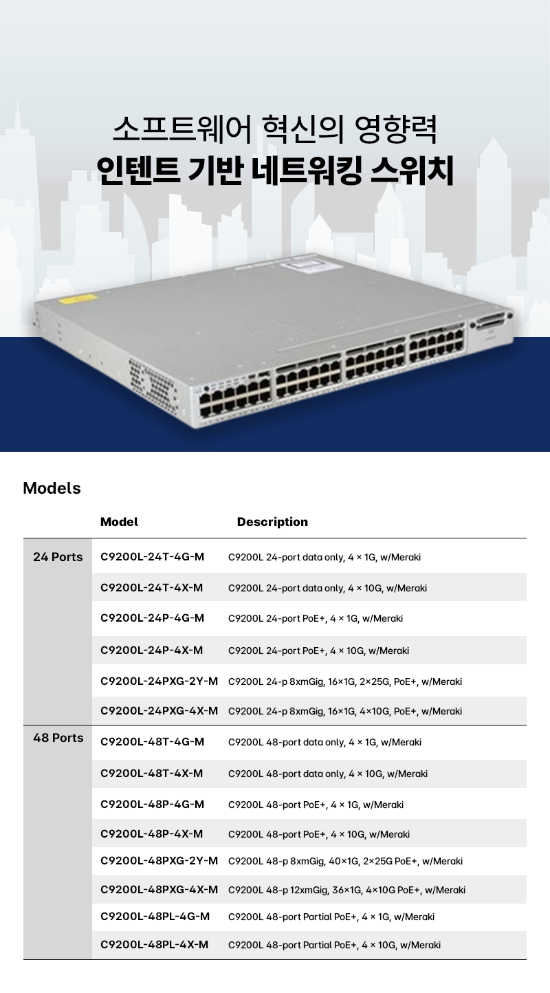 엔터프라이즈급 액세스 스위치의 Cisco Catalyst 9200 Series는 인텐트 기반 네트워킹과 Catalyst 9000 하드웨어 및 소프트웨어 혁신의 영향력을 더욱 광범위한 구축으로 확장합니다.