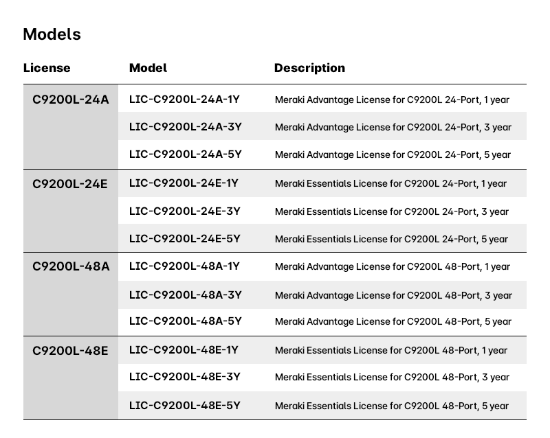 Meraki Advantage/Essentials License for C9200L