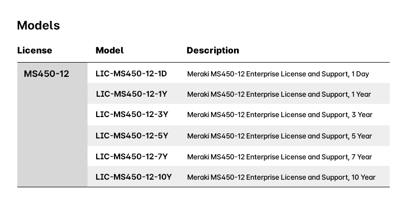 Meraki MS450 Enterprise License and Support